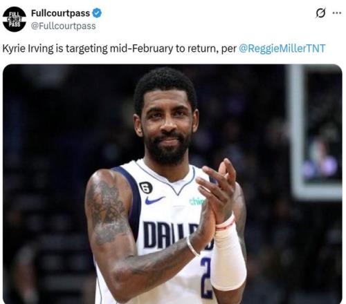 NBC评论员雷吉-米勒在解说本场比赛期间公开透露,欧文的计划是在2月中旬复出。