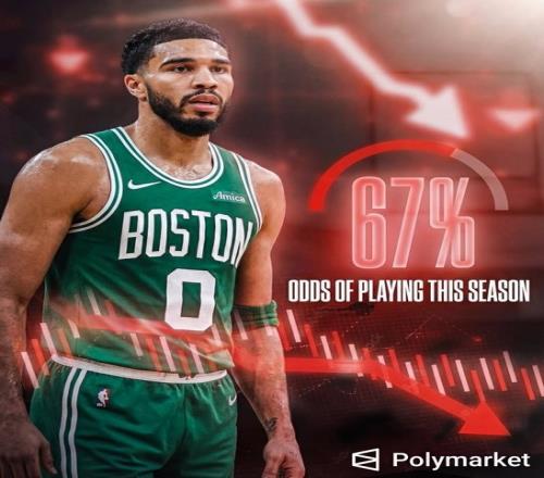 今天,体育预测平台Polymarket的数据,塔图姆本赛季的复出概率从87%降到了67%。
